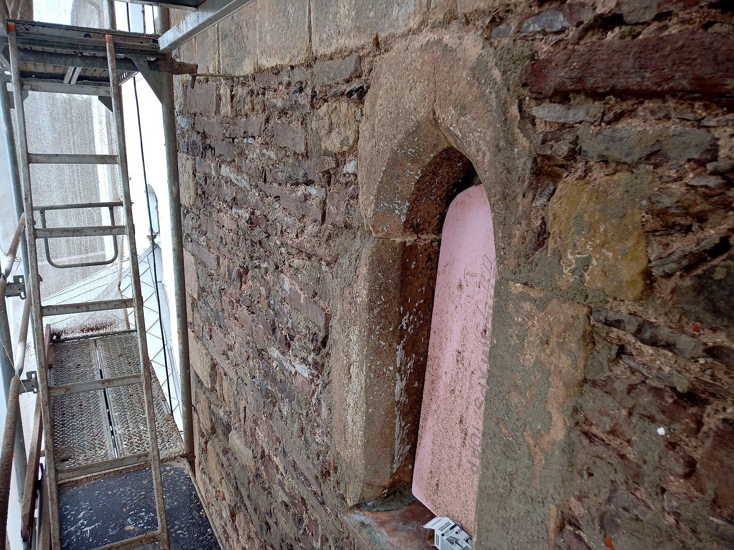 Kompletní rekonstrukce vápenných omítek na Márnici v Čáslavicích proběhla v roce 2015. V době kolem roku 1200 byl v prostoru ohraničeném částečně dochovaným příkopem a valem založen románský dvorec. Nacházel se zde kostel a obytné stavení (torzo dnešní márnice). Pravděpodobně prošel objekt márnice největší stavební úpravou společně s kostelem v r. 1764. Budova byla opatřena barokní fasádou, tvar střechy byl během 18. nebo 19. století zjednodušen na pultovou střechu. Při rekonstrukci byly vápenné omítky provedeny jako jednovrstvé, tak aby podporovaly architektonické dělení. Omítky pasivních ploch byly strukturálně upraveny proškrabáním. Aktivní plochy – šambrány, nároží a lizény byly začerstva zakletovány vápnem.