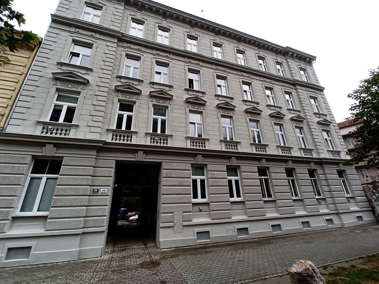 Bytový dům ve vlastnictví SVJ na ulici Nové sady v Brně, jednalo se o uliční část fasády, provedli jsme odstranění nesoudržných omítek, omítky byly nahrazeny novými vápenocementovými a došlo k celkové tvarové rekonstrukci ozdobných prvků na fasádě. Kuželky balustrády byly částečně nahrazeny novými odlitky, fasáda byla také doplněna novými klempířskými prvky, parapety a římsy a opatřena vrchním silikátovým nátěrem.